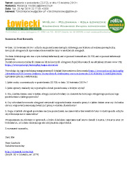 Zbudowani oświadczeniem Nowego Łowczego Krajowego Alberta Kołodziejskiego, który pierwszego dnia urzędowania oświadczył w wystąpieniu na video, że: .....transparentność w działaniu Polskiego Związku Łowieckiego, transparentność finansowa, jakościowa będzie przyświecać pracy nowemu Łowczemu Krajowemu. To Wy, Szanowne Koleżanki i Koledzy, budujecie nasz związek. To Zarząd Główny, to Zarządy Okręgowe są dla Was. To nie Wy jesteście dla Zarządu Okręgowego, ani dla Zarządu Głównego. To my dziękujemy za to, że jesteście i że możemy z Wami pracować, i na nowo budować związek....., zaczęliśmy pytać rzecznika prasowego Alicję Fruzińską.
