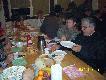 Prezes dobiera się do pieczonego dzika.Pierwszy kąsek już jest.Z resztą nie powinno być problemu.Tyle pustawych żołądków.Zaproszeni goście nie obijają się.